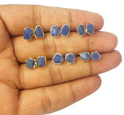 Blue Sapphire Rough Stud Earrings-September Birthstone Wedding & Engagement Gift Alloy Material